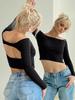 Modisches langärmliges rückenfreies sexy T-Shirt für Damen, modisch, Slim Fit, Basis, Schnürung, schwarze T-Shirts für Damen, Frühling und Herbst, Street-Casual-T-Shirt, Tops 25553