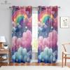 Cartoon Fenstervorhänge, Regenbogen-Einhorn, Cartoon-Vorhänge, Marmormuster, Wohnzimmer, Balkon, Küche, Dekoration für den Außenbereich