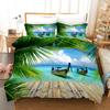 Strand Bettbezug Set Sommer Strand Dekor Hawaiianischer Urlaubsstil Bettwäsche Set Polyester Palme Tropische Natur Meer Steppdecke