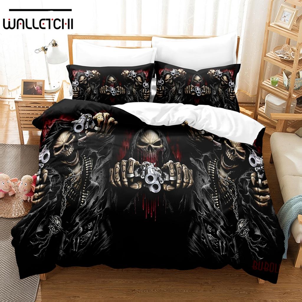 3D-gedrucktes Diablo Caput Mortuum Skelett Bettwäscheset Daunendeckenbezug mit Kissenbezug Doppel Einzel King