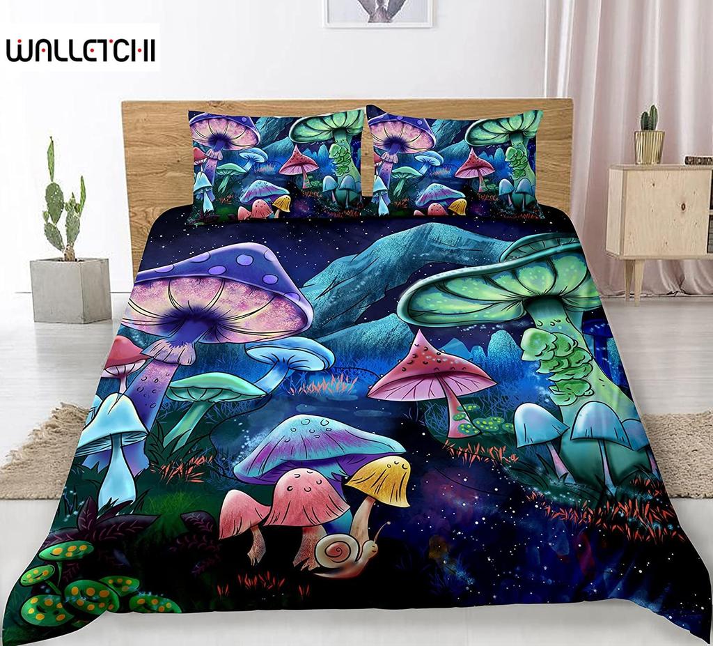 Wildpilz Bettbezug Set Burgunderfarben Pflanzen Bettwäsche Set für Kinder Bettdeckenbezug Weich Polyester King Queen Größe mit Kissenbezug