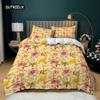Kleines Frisches Bettbezug-Set Frischer Gartenstil Rote Gelbe Blumen Grünes Blatt Bettwäsche-Set Teenager King Size Polyester Steppdeckenbezug