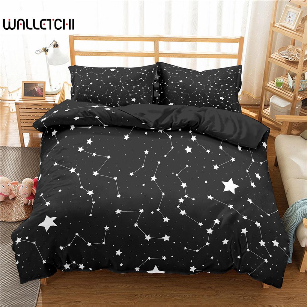 Star Bettwäsche-Set für Einzelbett, Doppelbett, Doppelbett, Queensize-Bett, 2/3-teilig, Nachthimmel, Polyester, Bettbezug, Kinderbettwäsche-Set, dunkelblau, Galaxie-Bettwäsche