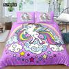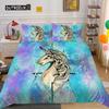 Einhorn Königin Bettbezug Cartoon Tier Regenbogen Universum Bettwäsche Set für Kinder Teenager Kosmischer Sternenhimmel Polyester Steppdecke