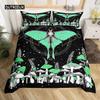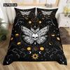 Schmetterling und Totenkopf-Falter Bettbezug Queen Gothic Schädel Blume Sternenhimmel Mond Bettwäsche-Set Polyester Boho Exotisch Schwarz Steppdecke