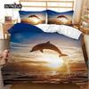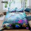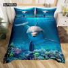 Delfin Seaworld Bettbezug Mikrofaser Meeresschildkröte Unterwasserwelt Grau Delfin Ozeanblau zur Dekoration Kind Jungen Mädchen Erwachsene