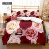 Romantische Rose Bettbezug Twin Queen Floral Bettwäsche Set Mikrofaser Blüte Blumen Steppdeckenbezug für Valentinstag Hochzeitsdeko