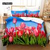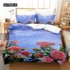 Blumen Pflanzen Bettwäsche Set Rosa Rose Bettbezug Set 3D Bettwäsche Digitaldruck Bettwäsche Queen Size Bettwäsche Set Modisches Design