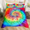 Hamsa Hand Bettbezug King Queen Boho Schwarz Gold Glückshand Fatima Bettwäsche Set Hippie Paisley Tribal Polyester Steppdeckenbezug