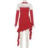 Weihnachten Winter Damen Sexy Spice Girl Neckholder mit Brust Unregelmäßigen Langarm Set Kleid