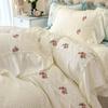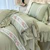 Spitzen-Bettwäscheset für Mädchen, Prinzessinnen-Bettbezug mit Laken, weiche gewaschene Baumwolle, französische romantische Heimtextilien, elegant und weich