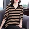 YYFS Damenmode Casual Frühling Herbst Streifendruck Langarm Polokragen Blusen & Hemden