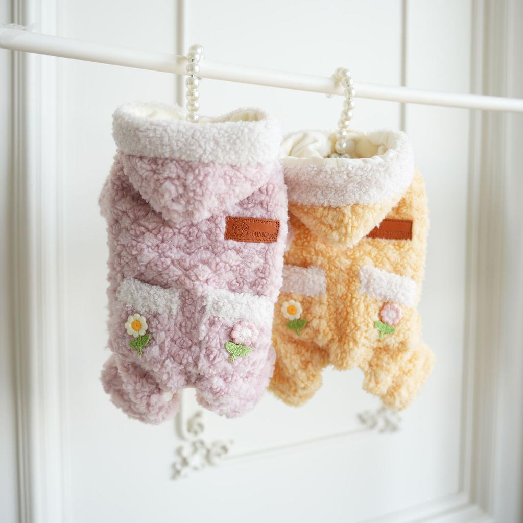 Herbst und Winter Haustier Hund Samt Kleine Blume Vierbeinige Kleidung Weicher Bauchschutz Warme Kleidung Teddy Hund Pyjamas Welpe