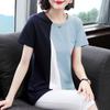 YYFS Damenmode Casual Sommer Frühling Farbblockdruck Kurzarm O-Ausschnitt Blusen & Hemden