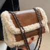 Lammwolle Splice Retro Kette Umhängetasche Lackleder Glänzend High-End Textur Schultertasche Damen Neue tragbare Handtasche