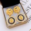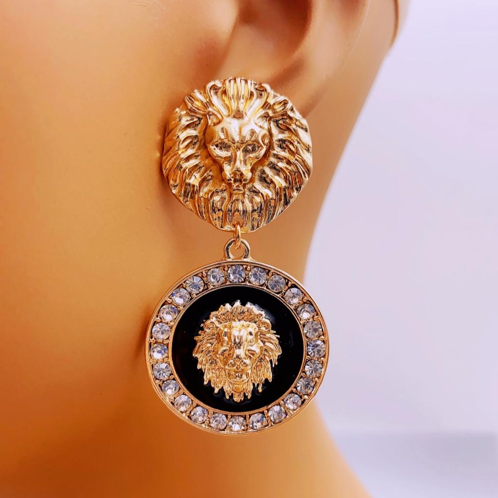 Einzigartige Design-Löwenkopf-Ohrringe, glitzernde Strass-Ohrringe, kreisförmige Ohrringe im Retro-Stil für Frauen