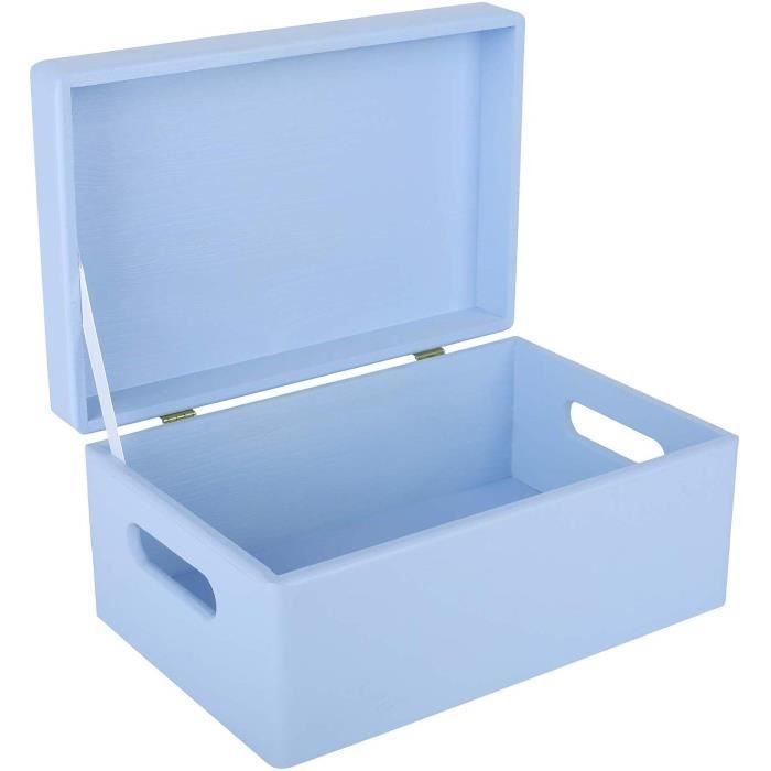 Boîte de Rangement en Bois Bleue Creative Deco - 30 x 20 x 14 cm - avec Couvercle et Poignées
