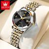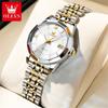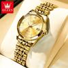 OLEVS Luxusmarke Damenarmbanduhren Prismatisches Spiegel-Edelstahl Wasserdicht Kalender Elegante Quarz-Uhr für Damen