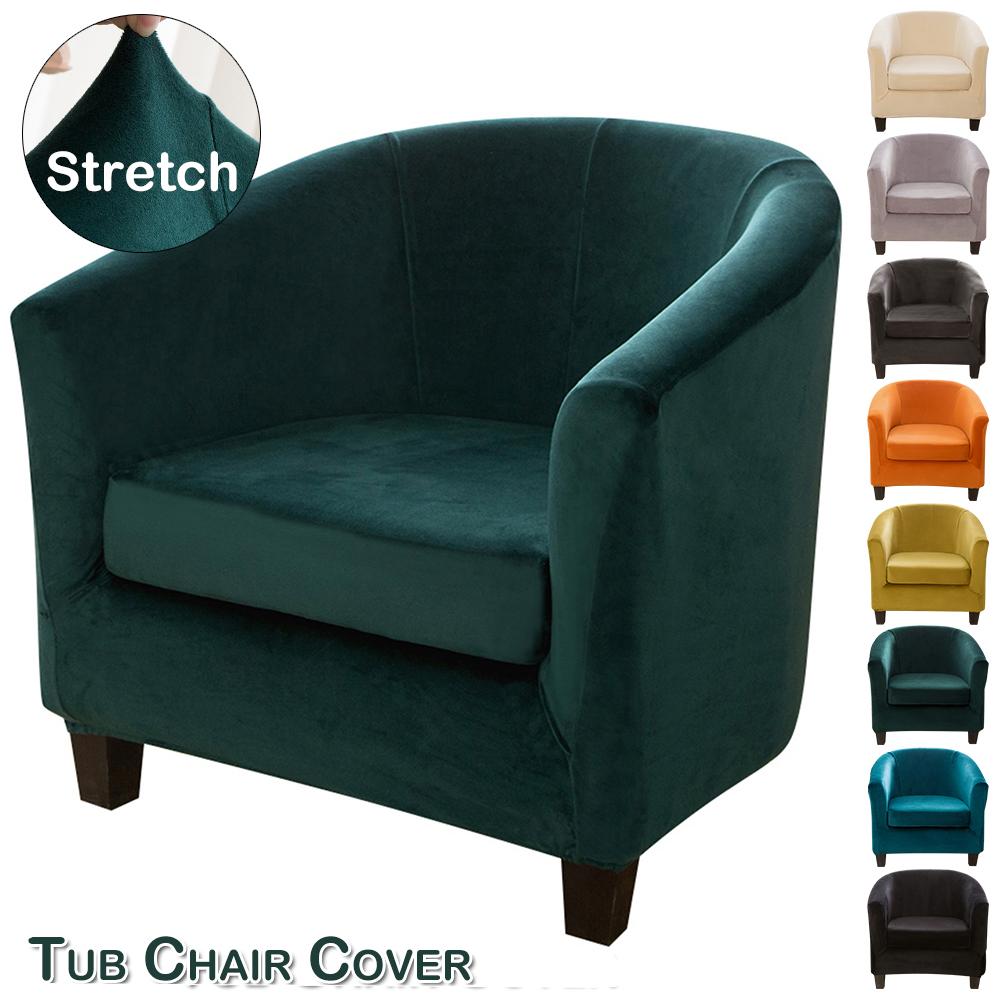 Velvet Tub Chair Slipcover Pub Club Sofa Fitted Single Armchair Covers Accent Chair Protector Stretch Barrel Chair Slipcovers