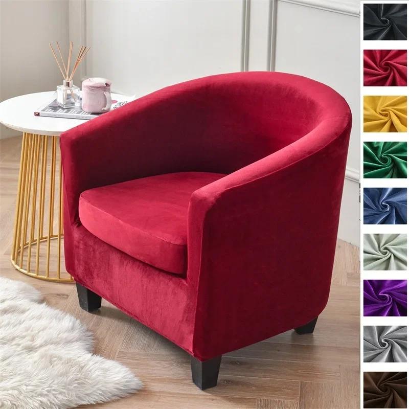 1.This 2 piece set tub chair slipcoveris made of stretchystretchy polyester and Spandex fabric, which is breathable, no fading, no pilling, smooth and wrinkle free.
