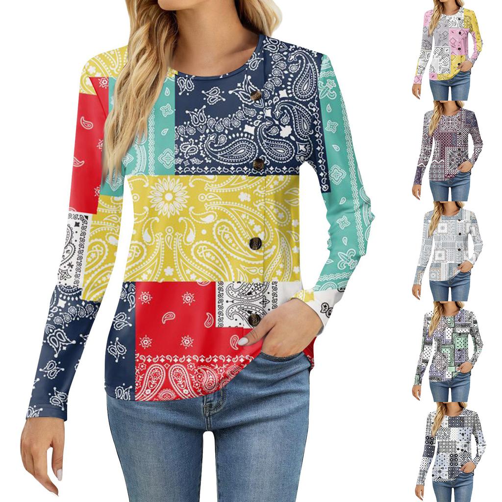 Damenmode Lässiges Rundhals-Langarm-T-Shirt mit Aufdruck
