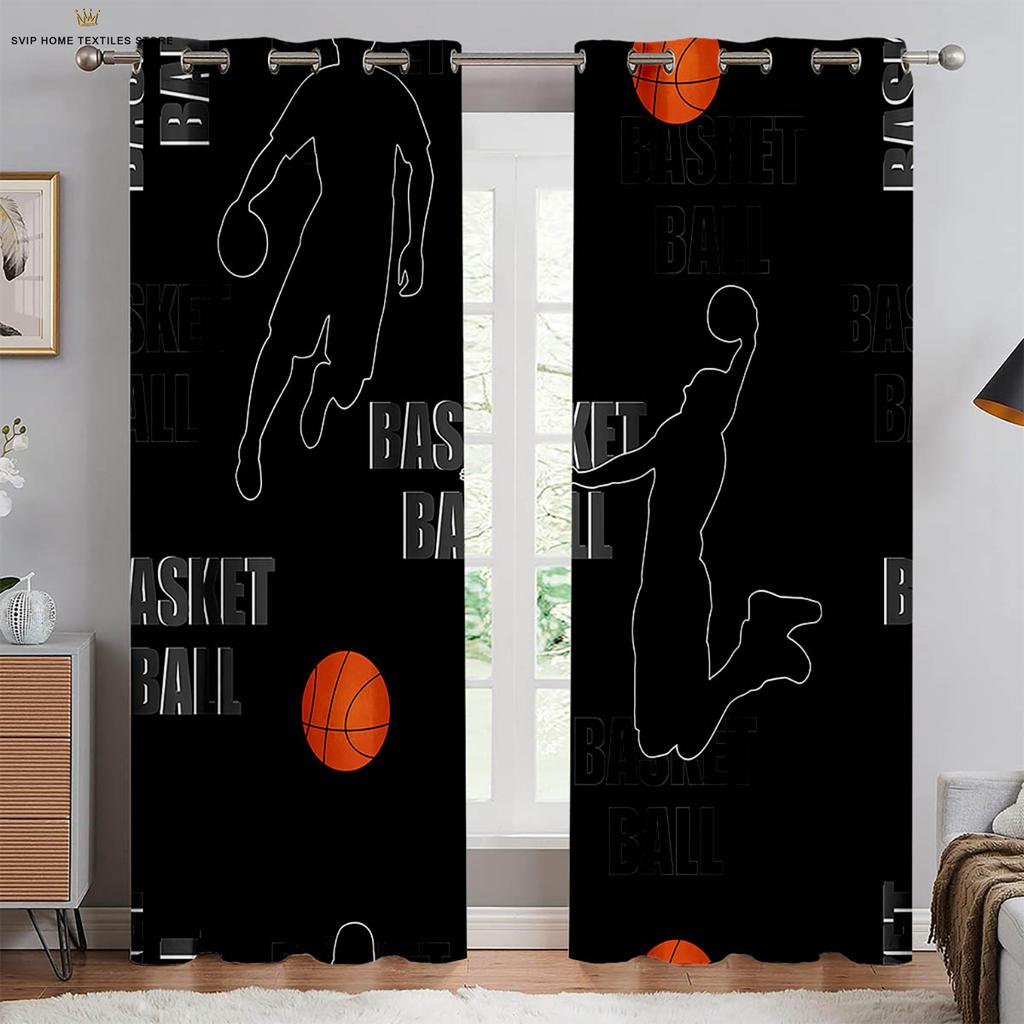 Maschinenwaschbare Vorhänge mit Basketball-Print, Schlafzimmer, Wohnzimmer, Küche, Club, Wohnheim, Dekorativ, 2 Stück