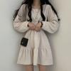 Frauen Langarm Gothic Schwarz Kleider Quadratischen Kragen A-Linie Süße Vintage Design Hohe Taille Mini Länge Weiche Koreanische Elegante