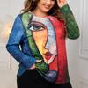 Damen Übergröße Gestreiftes Langarm Rundhals Weites Oberteil