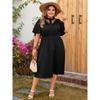 Einfarbiges Kleid für Damen in Übergröße, V-Ausschnitt, Spitzenausschnitt, elegantes Kleid