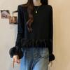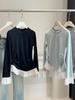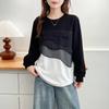 Frühling Herbst Neue Rundhals Langarm Mode T-Shirts Damen High Street Rüschen Patchwork Pullover Elegant Allround-Tops