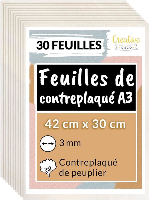 Planche de contreplaqué - Creative Deco - Peuplier - 3mm - 30 Feuilles - Finition Mat