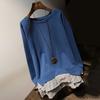 Lockeres Sweatshirt für Damen, Herbst, Fake-Zweiteiler, gestreift, Hunderte von mittellangen, lässigen Rundhals-Tops