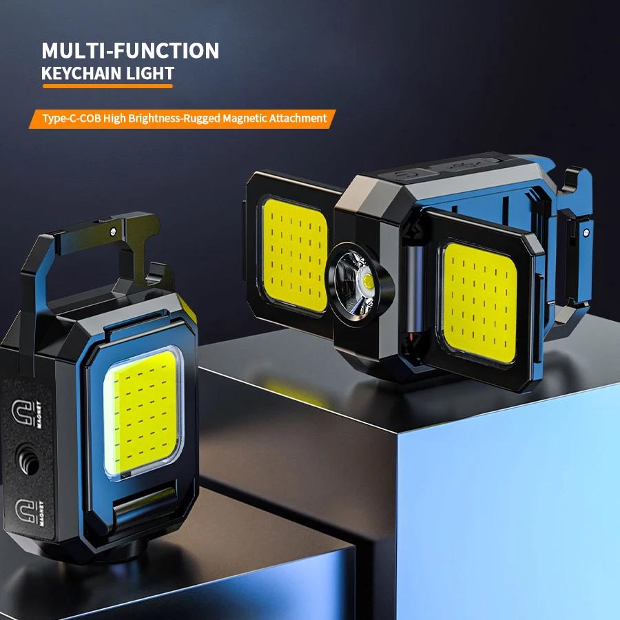 Multi Functional LED Flashlight Three Head Keychain Light USB Rechargeable Outdoor Waterproof Lighting Spotlight Work Light
