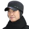 Schiebermütze aus Wolle mit Lederkrempe und Ohrenschutz für Herren - Warme, dicke Baumwollmütze für mittleres und älteres Alter (Herbst Winter).