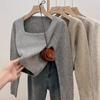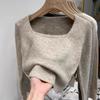 Verdickter Strickpullover mit quadratischem Ausschnitt für Damen Herbst- und Winter-Temperament Pullover mit Innenfutter Top