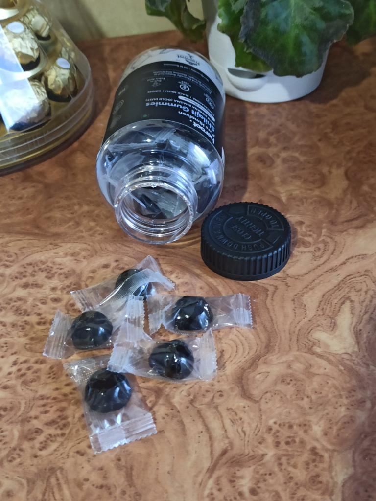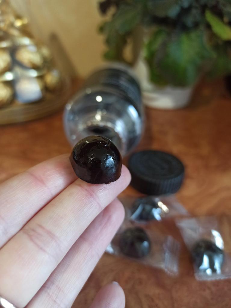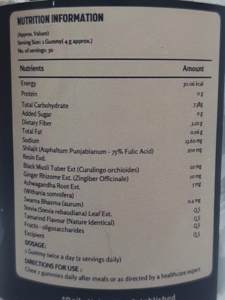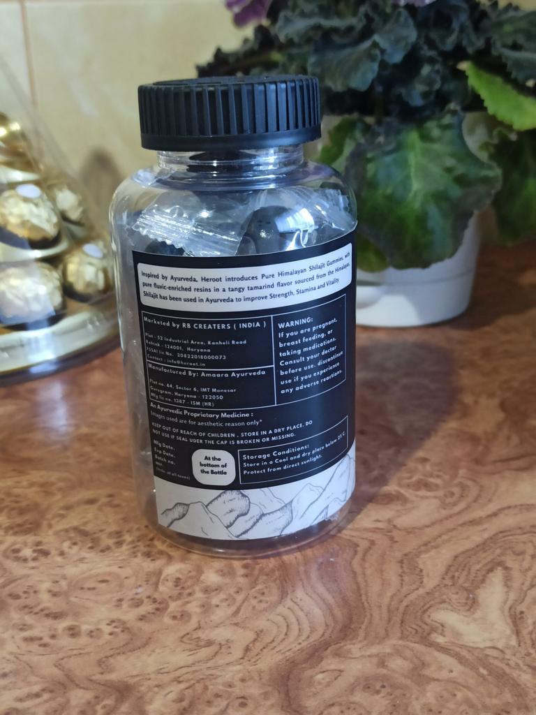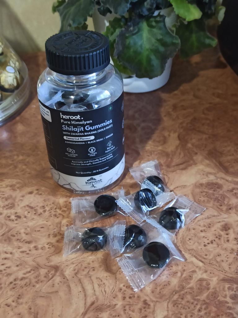 Kaubonbons aus Indien mit Himalaya Mumiyo. Kautabletten sind ein hochwertiges Nahrungsergänzungsmittel aus 100 % reinem Shilajit-Harz, reich an Fulvosäure und über 80 essentiellen Mineralien.. Diese köstlichen Kauartikel sind ideal für alle, die ihre körperliche Leistungsfähigkeit steigern und natürliche Energie ohne Nervosität und Energietiefs tanken möchten.. Die Tabletten wurden in einem Gefäß mit einer Schutzmembran unter dem Deckel geliefert.. Das Gefäß enthält 30 Tabletten, jeweils in einer Einzelpackung.. Süß und gelartig im Geschmack. Vor der Einnahme von Nahrungsergänzungsmitteln sollten Sie Ihren Arzt konsultieren.. Allen viel Spaß beim Einkaufen.