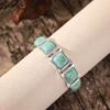 Vintage Böhmisches Armband mit grünem Stein, Damenarmband im Ethno-Stil, personalisierter geometrischer quadratischer Schmuck