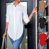Damen Einfarbig Langarm Revers Unregelmäßiger Saum Slim Fit Hemd