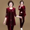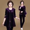 Mom's Velvet-Trainingsanzug für Damen, bestickt, Übergröße, 3-teiliges Outfit, lässiger Reißverschluss, Kapuzenweste + T-Shirt + Hose, Set Sweatsuit