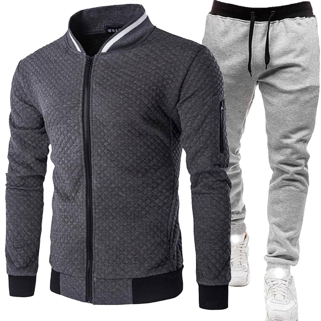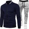 Frühling und Herbst Herren Übergröße Kragen Reißverschluss Strickjacke Pullover Jacke + Freizeithose Baseballuniform Sport Zweiteiliges Set