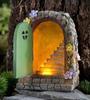 Solarbetriebenes Feentor, Miniaturmodell für den Garten mit Stufen und offenen Türen, Kunstharz für Wände, Bäume, Heim- und Außendekoration