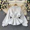 Langarmshirt Damen Dreidimensionale Plissee Rüschen Taille Temperament Vielseitige Frühlingsbluse