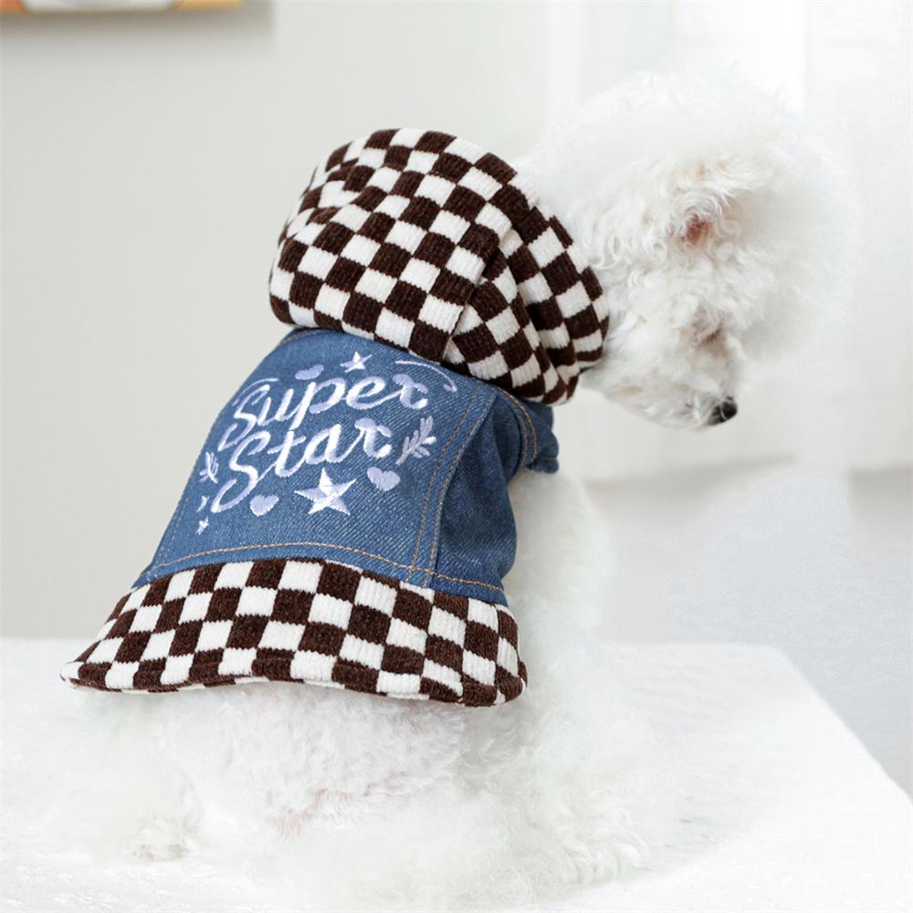 Klassische Karos Haustier Jeans Kleidung für Kleine Hunde Herbst Winter Welpen Hund Kapuzenmantel Jacke Zwergspitz Pudel Haustiere Kleidung