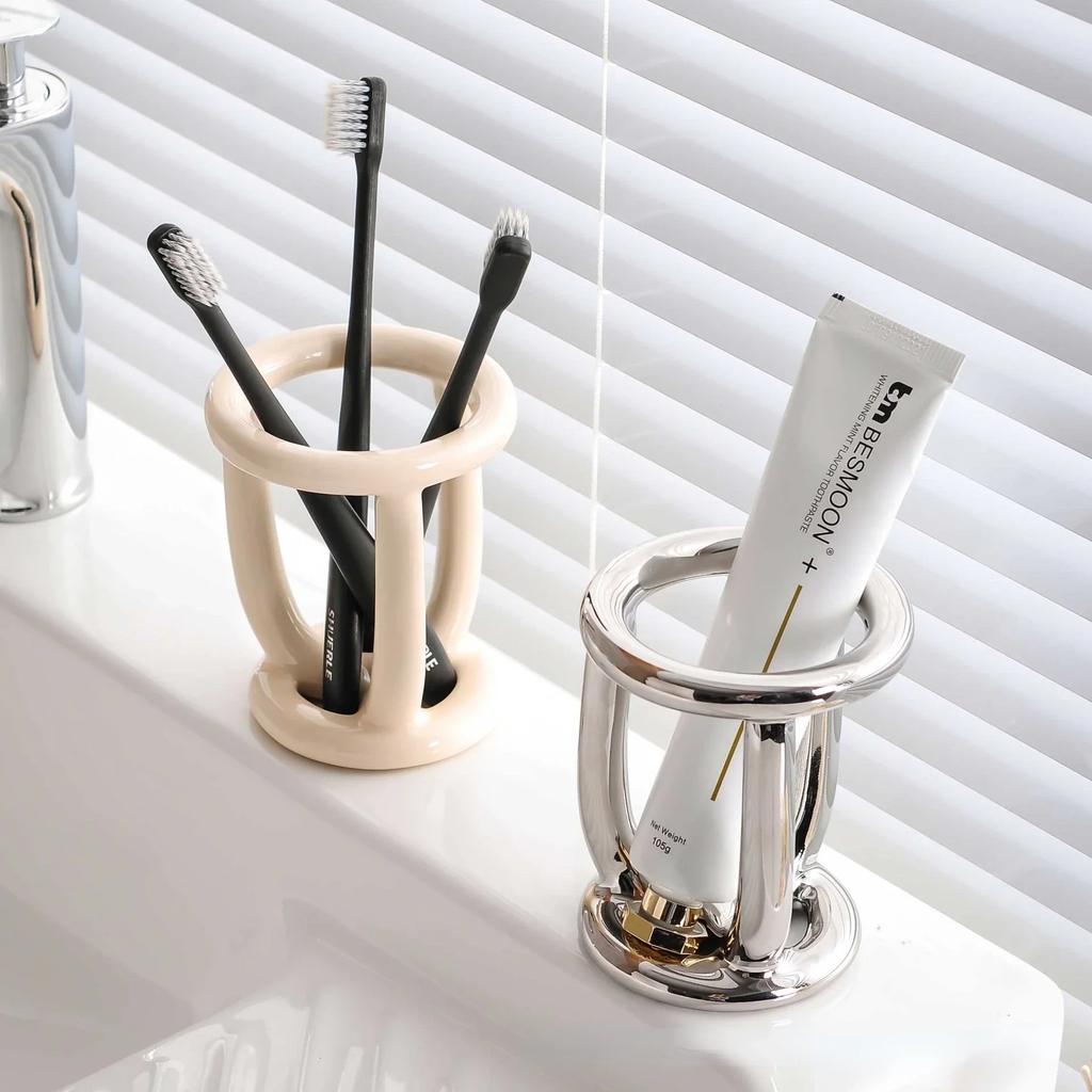 Simple Ceramic Toothbrush Holder Base Multifunctional Toothpaste Holder Portable Toothbrush Organizer Case Bathroom Accessories