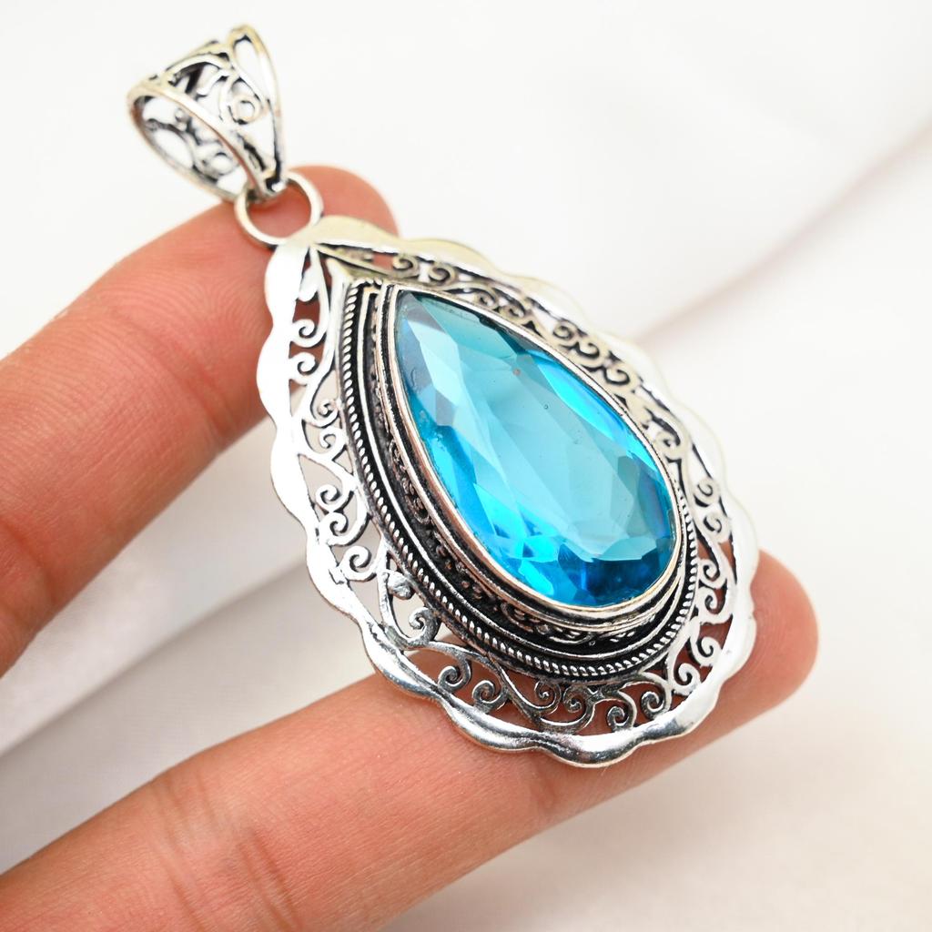 Blauer Topas Anhänger, 925 Sterling Silber Edelstein Schmuck, handgefertigter Anhänger, für Thanksgiving