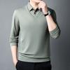 Herren Strickhemd mit langen Ärmeln, lässig, mit Fleecefutter, gesticktem Karomuster, Reverskragen im Lagenlook, leicht dehnbarer Stoff für Herbst/Winter