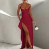 Damen Herbst/Winter Sexy Rückengurt Geteiltes Abendkleid Einfarbiges Trägerkleid