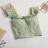 Damen Tanktop Süß Kurz Einfarbig Schleife Neckholder Kurz Rüschen Weste Tops