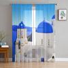Griechenland Santorini Blaudachkirche Transparente Vorhänge zur Wohnzimmerdekoration Fenstergardinen Küche Tüll Voile Organza Vorhänge