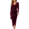Herbst und Winter V-Ausschnitt Paket Hüfte Einfarbig Sexy Mittellange Kleider
